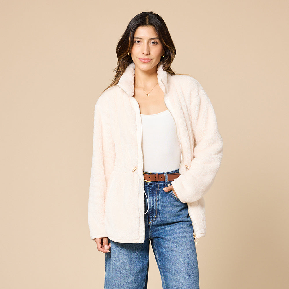 The full front zipper and adjustable drawcord waist make layering effortless and flattering, whether you’re slipping it over pajamas on Christmas morning or leggings for a quick coffee run. One zip, instant cozy.